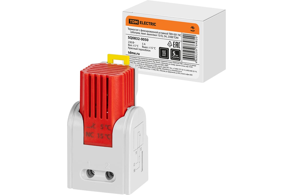 Термостат с фиксированной уставкой TDM ELECTRIC ТФУ-001 NC (обогрев, темп. выкл/вкл 15/5), 5 А, 230 В SQ0832-0050