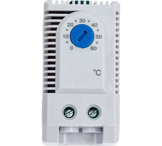 Термостат с нормально открытым контактом Dekraft. Диапазон уставок - от 0 до +60°C. Напряжение питающей сети - до 250 В АС. Предназначено для применения совместно с фильтрующими вентиляторами для охлаждения внутреннего пространства электротехнических шкафов.