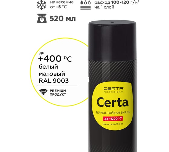 Термостойкая краска для металла, печей, мангалов, радиаторов, дымоходов, суппортов CERTA до 400С белый RAL 9003, аэрозоль CST00060 используется для окрашивания металлических, бетонных, кирпичных, цементных и оштукатуренных поверхностей (камины, мангалы, двигатели, детали, машины и другие).