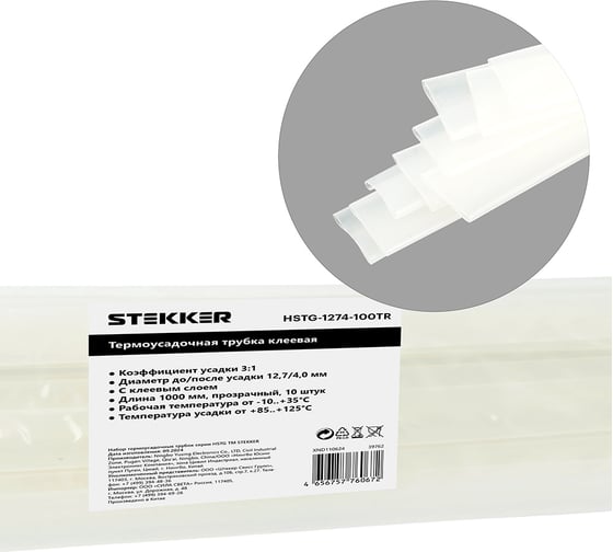 Технические характеристики STEKKER 12,7/4,0 100 см усадка 3:1 прозрачный 39762