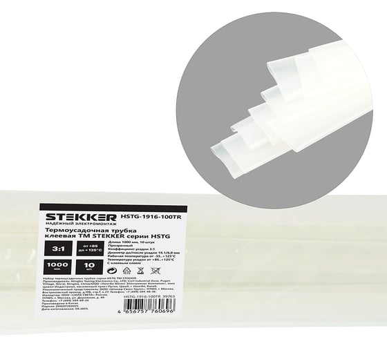Расходные материалы для клеевой термоусадочной трубки STEKKER 19,1/6,0 100 см усадка 3:1 прозрачный 10шт в упак 39763