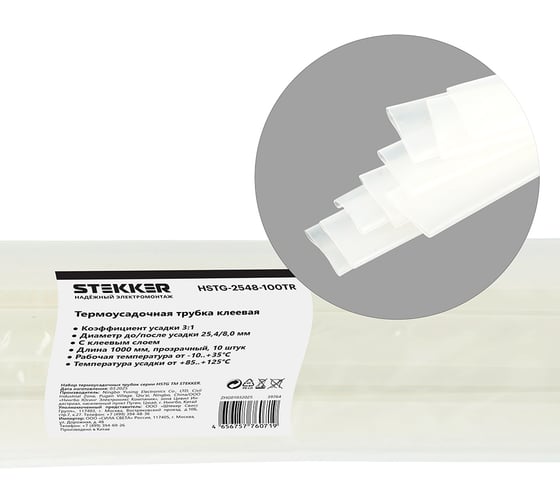 Технические характеристики STEKKER 25,4/8,0 100 см усадка 3:1 прозрачный 39764