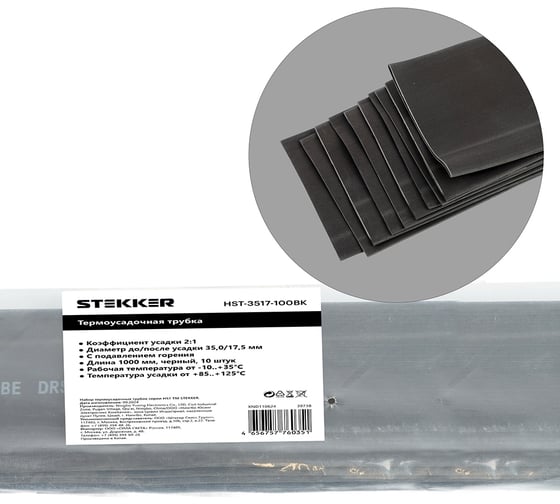Технические характеристики STEKKER HST-3517-100BK 35,0/17,5 длина 100 см усадка 2:1 черный 39738