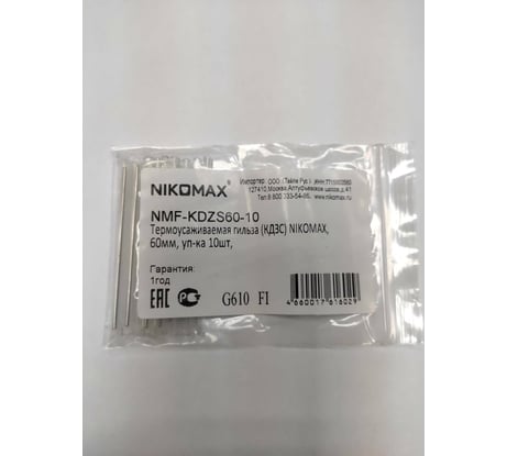 Термоусаживаемая гильза NIKOMAX КДЗС, 60мм, 10шт NMF-KDZS60-10 На страницу товара55 ₽