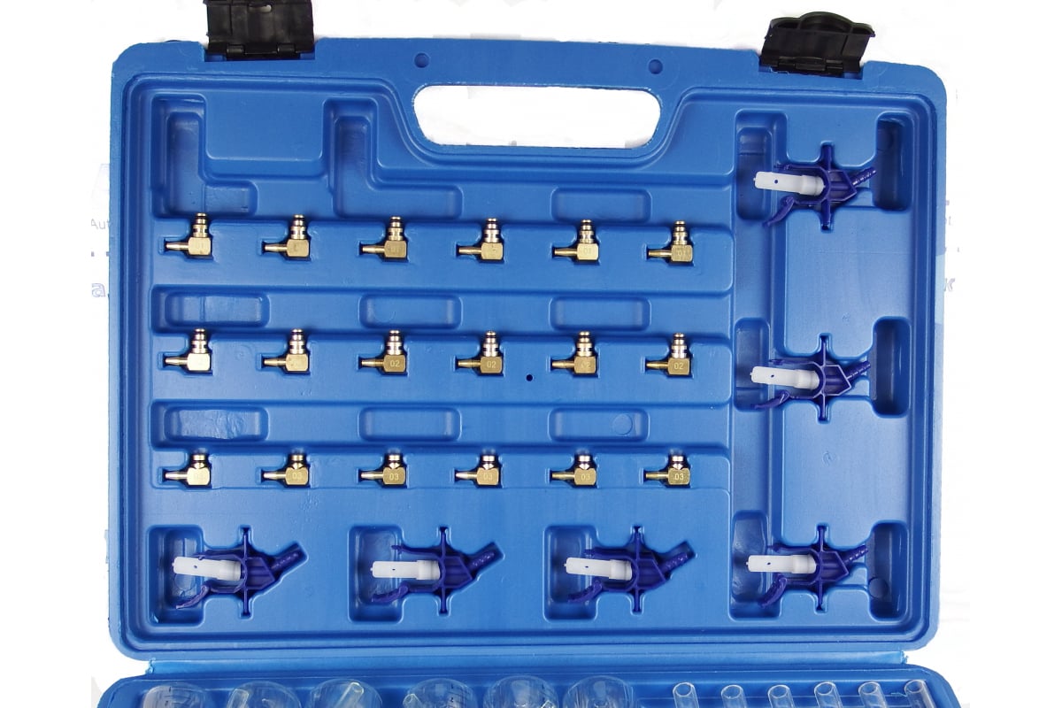 Тестер дизельных форсунок AE&T Common Rail TA-A1074 упрощает проведение диагностических и ремонтных работ. Элементы набора используются для проверки факела распыла и количества подаваемого топлива.