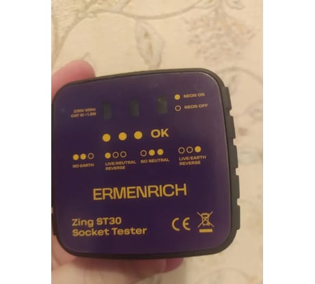 Тестер розеток Ermenrich Zing ST30 прибор, который нужен, чтобы контролировать правильность установки розеток и проверять наличие электропитания в сети.