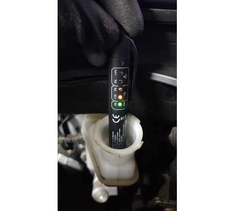 Хорошая вещица для автолюбителей , которые сами обслуживают свое авто. Показывает процент влаги в тормозной жидкости . Всегда под рукой.