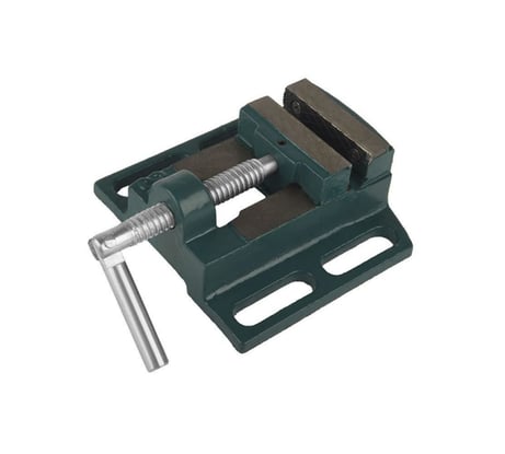 Станочные тиски STURM BD7037 зеленые. Покупал сверлить небольшие отверстия, чтобы не вырывало из рук, и не обжигаться о металл. Каждый раз давлю на деталь при зажатии, проверяю, чтобы была прямо. Меня устраивает. Если ниже оси винта класть - будут опускать и если выше, то поднимать. Внизу обычная прижимная пластина, её толщины и определенного загиба достаточно, чтобы держать губку при зажатии. Сверлил уже много, так или иначе получается выставить ровно. Осевое расстояние 104 мм. Решил придать им чёрный цвет.