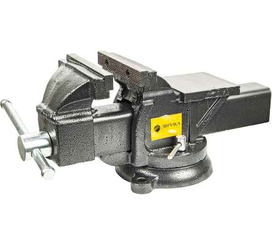 Тиски слесарные ЭВРИКА ER-190150 поворотные с наковальней и трубным захватом 6-150мм чугунные, усил 838001