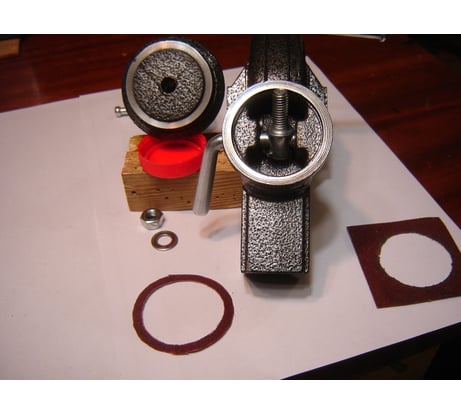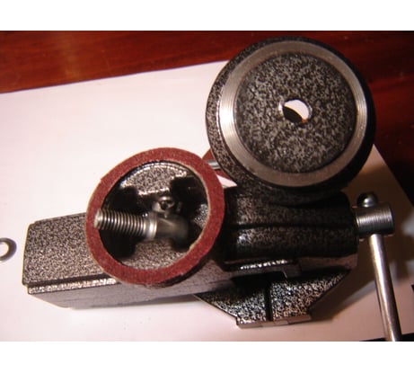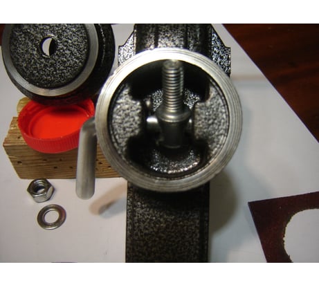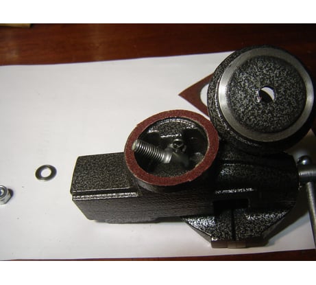 Недостатков две категории. 1) Недостаток - заусенцы и острые края на губках и корпусе подвижной части. Эти недостатки удалил напильником с насечкой №3. Губки пришлось демонтировать и притереть на мелкой наждачной шкурке. 2) Недостаток более серьёзный. На кольцевые поверхности контакта корпуса и струбцины нанесено отличное лакокрасочное покрытие (ЛКП). Наличие которого не позволяет надёжно зафиксировать тиски при повороте верхней части. При сильном прижатии рычагом, фиксации тисков слабая, от чего они свободно проворачивается от руки, а тем более при усилия прикладываемого напильником при опиливании детали. Для устранения этого недостатка - удаления ЛКП, кольцевую поверхность верхней, подвижной части тисков я притёр на крупной наждачной шкурке, предварительно демонтировав механизм прижатия, см. фото №2 (механизм прижатия уже установлен). Для удаления ЛКП на кольцевой поверхности струбцины вырезал круг диаметром 42 мм в шкурке 50х50 мм (см. фото №1) и приклеил её тканевой основой к верхней подвижной части тисков Клеем Момент классический. . Полностью собрав тиски и, регулируя величину прижатия подвижной части, вращательными движениями притёр и поверхность струбцины. Разобрав тиски и, убедившись, что ЛКП на струбцине удалено полностью (см. фото №3), наклеил на тот же клей новое кольцо размером диаметр 42 на диаметр 50 на одну из кольцевых поверхностей. В данном случаи на подвижную часть тисков. Я во всех случаях использовал наждачную водостойкую шкурку на тканевой основе Р60, которая была под рукой. После окончательной сборки тисков поворотная часть в любом положении фиксируется надёжно. Несмотря на недостатки и необходимость доработка, тискам ставлю оценку 5.