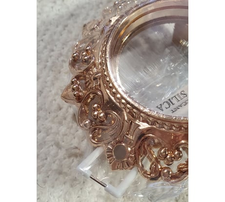 Нет ожидаемого эффекта старения. За счет сложных узоров по краям видны остатки металла из-за неподходящей формы для заливки. В результате выглядит всё это не очень хорошо.