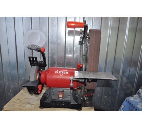 Нужен был компактный станок для дома. Выбирал долго и приобрел этот чудо аппарат. 2 в 1, заточной и гриндер, пусть и не очень хороший, но лучше такой, чем на доске по наждачке юзать. Вибрации нет, подпрыгиваний нет, стоит на столе без всякого крепления и не двигается. Ленты меняются без проблем. Надо только после замены отрегулировать , чтобы лента не ездила по ролику. Пишут размер у них не стандартный, но нашел в ВИ родные Elitech (кстати ленты тоже доработал - переклеил встык, чтобы при использовании небыло ударов по заготовке. Доволен как слон приобретением и ни капли не жалею!