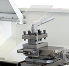 - Передняя бабка оборудована кнопкой аварийной остановки. Также предусмотрен специальный защитный экран, который обеспечивает безопасность рабочего от попадания в глаза металлической стружки.