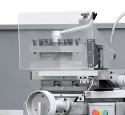 Безопасность работы Защитный экран над шпинделем в зоне резания препятствует вылету искр и стружки, не закрывая обзор оператору. |