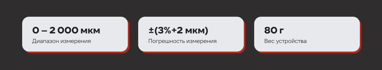 - Мгновенное измерение Результат появляется за доли секунды после прикосновения к поверхности — никакого ожидания, всё оперативно и точно
