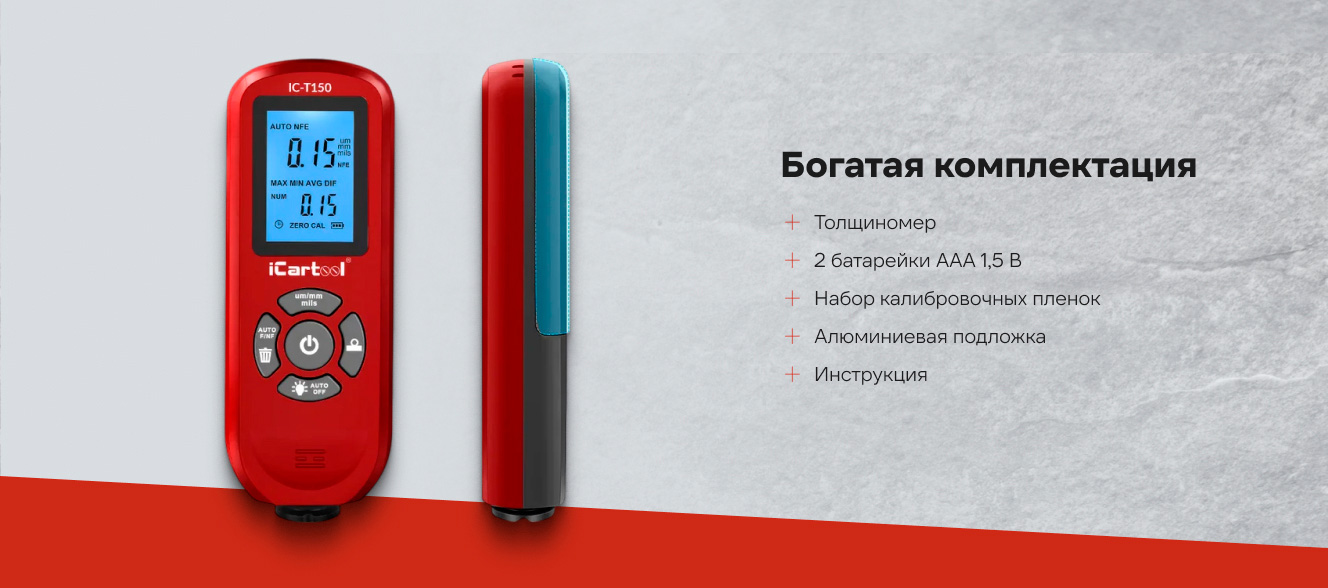 Толщиномер лакокрасочных покрытий iCarTool Fe/NFe IC-T150