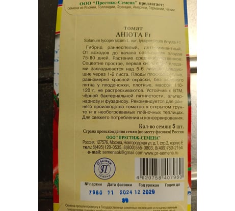 Томат Престиж-Семена Анюта F1, 5 шт. 00036055