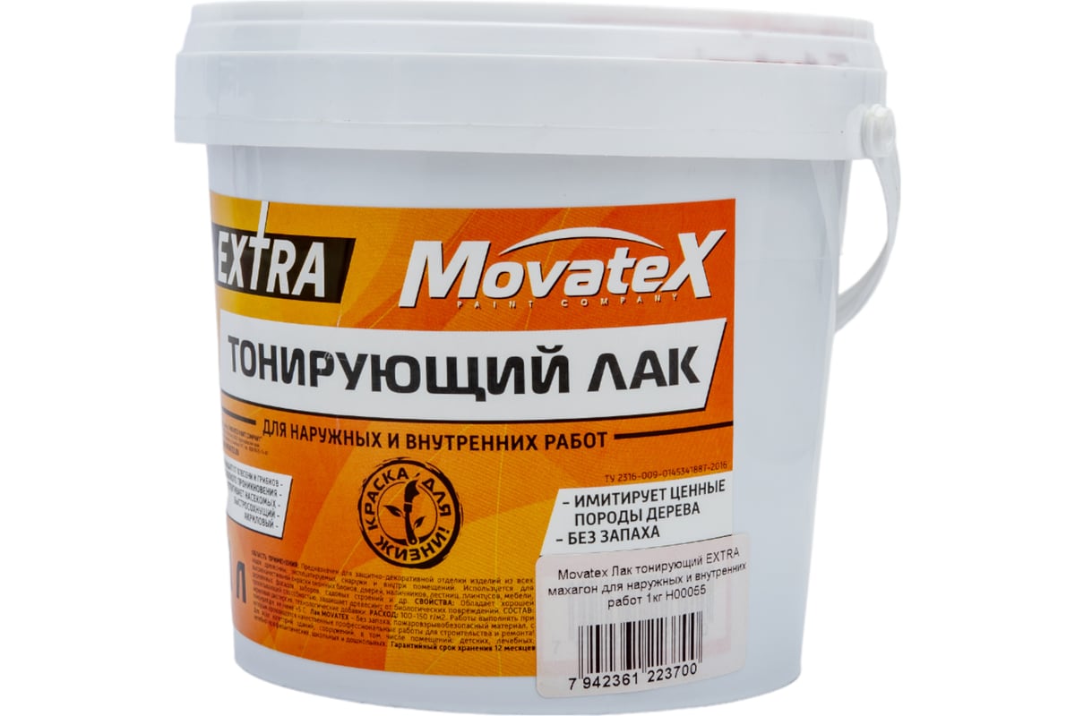 Тонирующий лак Movatex EXTRA махагон, для наружных и внутренних работ, 1 кг Н00055