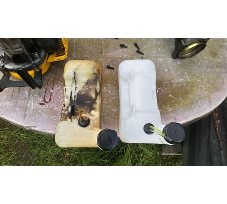Качество пластика хорошее, не воняет. Крышка плотно закрывается, ничего не протекает. Теперь можно спокойно работать, не боясь, что топливо вытечет. Отличная замена старому баку, рекомендую.