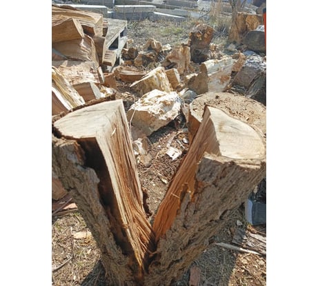 Для моего веса 65кг веса колуна хватает. Колет хорошо березу, сосну, лиственницу, вербу, яблоню. В мороз от -10С разлетаются сами. Заточка с завода была острая, но немного в замятинах хотя и в защитном кожухе. Пришлось немного подточить и сделать чуть острее угол, после этого чурки раскидывает - только подставляй. Старую вербу колет даже вдоль полена, когда упала, а ставить лень. Комлевую березу в районе корня колет с усилием, стволовую без проблем, "штаны" - хоть вдоль, хоть поперек. Единственный недостаток - не хватает длины топорища. Для моего роста 176см, добавить бы к топорищу 15см. Оптимальная длина топорища, когда колун стоит на земле, а нижнюю часть рукояти держишь в руке. При такой длине, сила удара при взмахе становится больше, можно брать колун не нагибаясь. А так не чувствую длины, приходится задумываться каждый раз при ударе. Небольшие чурки можно докалывать одной рукой. Если вдруг сломается фибергласовое топорище (в чем я сомневаюсь), то вырежу из березы под себя в нужный размер. И еще, цена порадовала. Хотел брать Матрикс, но тут вдруг "выгодный четверг" 1150Р.