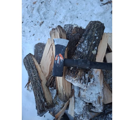 Для моего веса 65кг веса колуна хватает. Колет хорошо березу, сосну, лиственницу, вербу, яблоню. В мороз от -10С разлетаются сами. Заточка с завода была острая, но немного в замятинах хотя и в защитном кожухе. Пришлось немного подточить и сделать чуть острее угол, после этого чурки раскидывает - только подставляй. Старую вербу колет даже вдоль полена, когда упала, а ставить лень. Комлевую березу в районе корня колет с усилием, стволовую без проблем, "штаны" - хоть вдоль, хоть поперек. Единственный недостаток - не хватает длины топорища. Для моего роста 176см, добавить бы к топорищу 15см. Оптимальная длина топорища, когда колун стоит на земле, а нижнюю часть рукояти держишь в руке. При такой длине, сила удара при взмахе становится больше, можно брать колун не нагибаясь. А так не чувствую длины, приходится задумываться каждый раз при ударе. Небольшие чурки можно докалывать одной рукой. Если вдруг сломается фибергласовое топорище (в чем я сомневаюсь), то вырежу из березы под себя в нужный размер. И еще, цена порадовала. Хотел брать Матрикс, но тут вдруг "выгодный четверг" 1150Р.