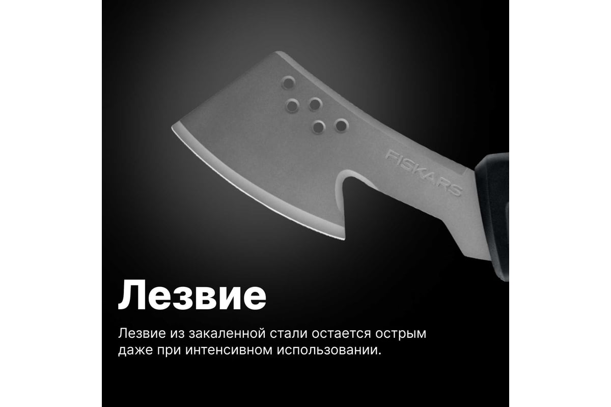 Удобный, острый, прочный. Можно наколоть лучин на растопку.