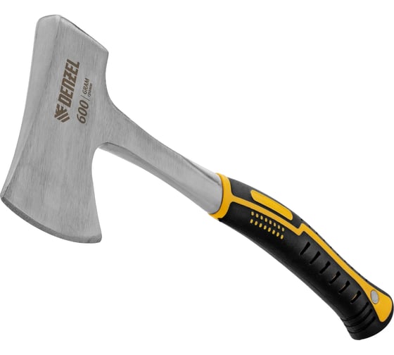 Топор цельнометаллический Denzel 600г, двухкомпонентная обрезиненная рукоятка, изогнутый хват 21513