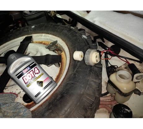 При -15° тормозная жидкость стала желеобразной с кристаллами замерзшей воды.