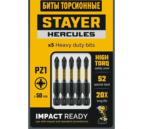 Торсионные биты Stayer PZ1, 50 мм, 5 шт HERCULES 26233-1-50-5