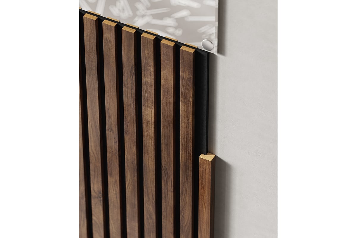 Торцевая ламель применяется для завершения монтажа панелей. Торцевая планка заменяет первую рейку и служит завершающим элементом после выступа акустического полотна в конце декорированной зоны. Придает законченный эстетичный внешний вид.