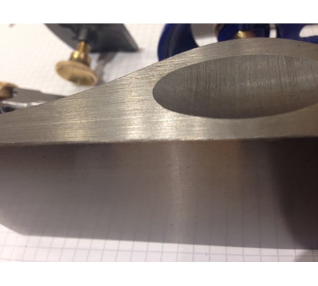 Не нашел среди 9 штук хоть один нормальный. С подошвой и геометрией угла подошвы и боковины все более или менее нормально и можно поправить. Главная проблема в проточке щели выхода ножа. Упорная часть, о которую опирается нож на некоторых была до 3-4 мм, а на некоторых менее 1 мм при этом с разных сторон она может быть разной толщины. Из-за этого либо нож становится криво, либо, если упорная часть толстая, имеет большой вылет вперёд даже при минимальной настройки глубины и надо сильно выносить подвижную часть подошвы.