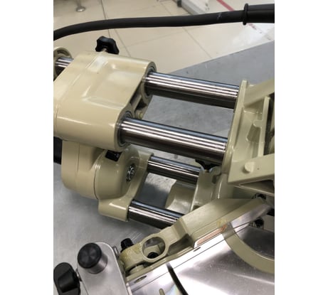 - Четыре стальные штанги с четырьмя линейными шарикоподшипниками обеспечивают стабильный и точный распил