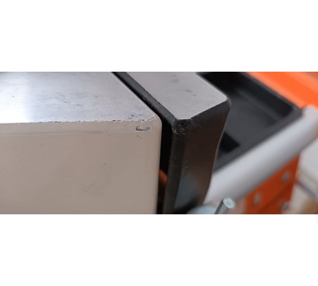 Настраивать пришлось все углы. Поворотный стол ниже правой станины на 5-7 десяток на глаз. Покраска просто ужасна. Под краской пыль, сколы. При откручивании болтов краска. отваливается кусками. Инженеры хотели сообразить прицел, получилось что-то убогое. Защитный кожух цепляет пр опускании головы. Оказалось что нужно допилить напильником заглушку для проводов прицела и посадочное болта которым она прикручивается. Не удобный конструктив прижима заготовки. На направляющих подшипниках люфта ощутимого нет. Немного качается при полном вылете, но это не удивительно. Вылет существенный, станина не кондовая СССРовская. Стружкоотсос под диском пришлось смещать перед первым запуском, чтобы диск его не покоцал. Теневой прицел начинает работать если подвести диск к самой заготовке почти вплотную, надо ставить светодиод мощнее. . Честно сказать, ожидал большего.