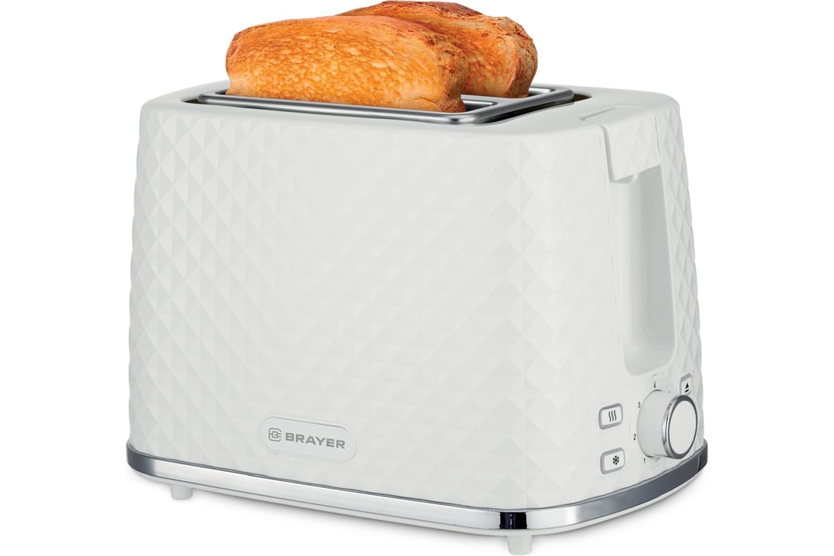 Тостер BRAYER 930 Вт, 7 режимов, автодогрев, разморозка, отмена, автоотключение, 2 тоста одновременно, съемный поддон BR2101