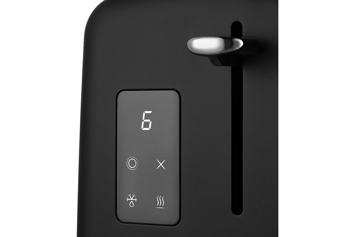 Сенсорный дисплей с управлением. Тостер оснащён сенсорной панелью управления и дисплеем. «Подогрев» служит для разогрева уже готовых тостов, если они остыли. «Разморозка» позволяет приготовить тосты из замороженного хлеба. «Стоп» - прибор выключается, а тосты поднимаются наверх.
