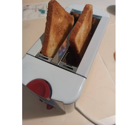 Тостер обыкновенный.Куски хлеба из него вылетают сантиметров на 20.