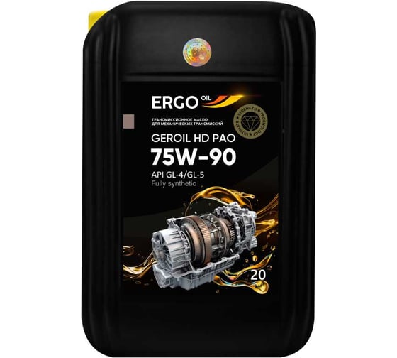 ERGOOIL GEROIL HD PAO 75W-90 полностью синтетическое трансмиссионное масло, разработанное на основе высококачественных синтетических базовых масел (полиальфаолефинов – PAO) для универсального применения в узлах тяжелонагруженной техники. Содержит в своем составе многофункциональный пакет присадок с технологией Ultimate Strength Technology®.
