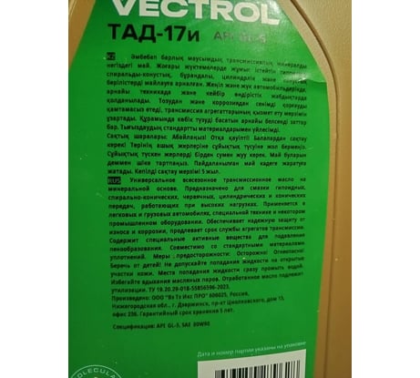 Отзывы о трансмиссионном масле минеральном ТАД-17и 5 л VECTROL ve3117