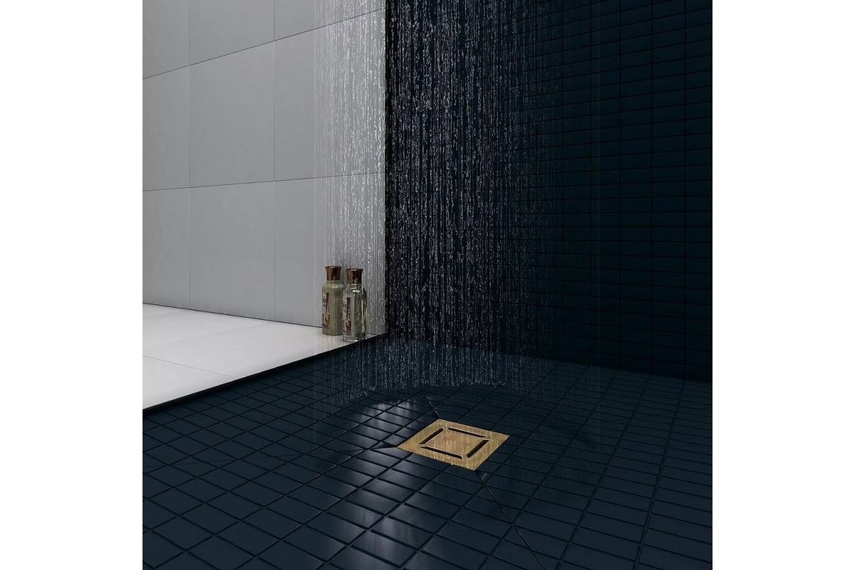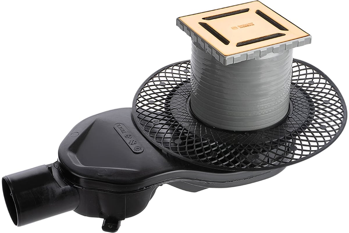 Трап водосток Berges platz norma 100x100, золото глянец, s-сифон d50 h60 боковой 092158