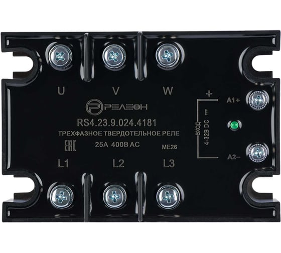 Трехфазное твердотельное реле РЕЛЕОН вход 24в Dc; выход 3но 25а, 48-440в Ac; произв. пере, RS42390244181