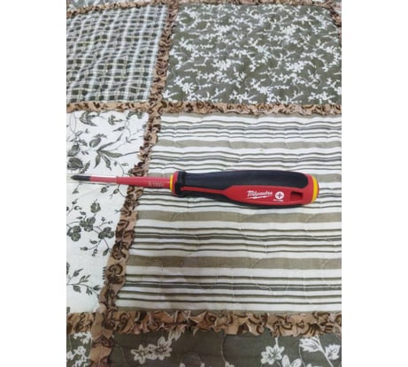 Отличная качественная изолированная отвертка. Приятная ручка, не отклеивается.