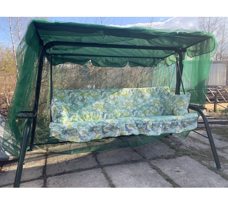 Размеры конструкции позволяют с комфортом разместиться втроем. Для защиты от палящего солнца предусмотрен тент.
