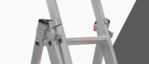 Многофункциональная трехсекционная лестница пригодится в частном доме, на стройплощадке или складе. Ее можно выставить в пяти разных положениях, включая двустороннюю стремянку и лестничный марш для разноуровневых поверхностей. Съемная секция служит приставной лестницей. Предусмотрено два зацепа с фиксаторами для соединения секций на нужном шаге. Плотное прилегание элементов с легким скольжением осуществляется благодаря пластиковым вставкам в направляющих кронштейнах.
