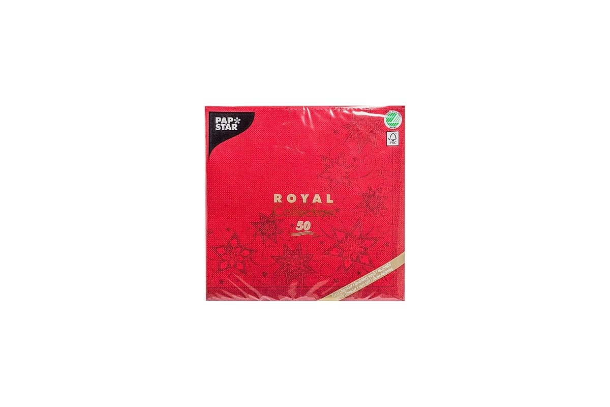 Трехслойная бумажная салфетка PAPSTAR ROYAL COLLECTION ЗВЕЗДЫ 48х48 см 50 шт в упаковке красная 1/5 PS-82850