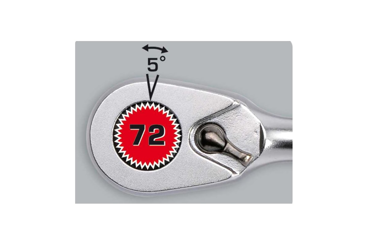 Трещотка реверсивная Felo 49763541 имеет 72 сверхтонких зуба и предназначена для работ в труднодоступных местах, где рабочий ход трещотки очень ограничен. Трещотка Felo оснащена кнопкой фиксации головки и функцией реверса (флажок реверса). Для установки/снятия головки, а посадочный квадрат необходимо нажать на кнопку в центре трещотки.