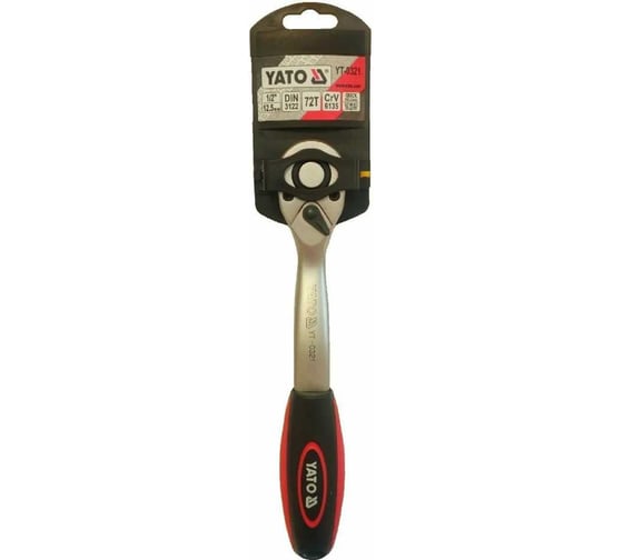 Трещотка YATO пластмассовая ручка, изогнутая, 72 зубца, 1/2, 255 мм YT-0321 37130321 092 1