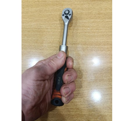 Трещотка прочная, тяжёлая в сравнении с трещоткой с не выдвижной ручкой