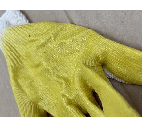 Перчатки разные по размеру , в одной паре одна больше другой , причём в разных парах разная ситуация, то левая больше, то правая . Некоторые пальцы перчатки внутри слиплись от латексного покрытия , и перчатка не надевается , нужно применить усилие , чтобы расклеить их , и не в каждом случае получается это сделать до конца . Купил сразу несколько пар , пришлось сначала сортировать перчатки по размеру , и разлеплять слипшиеся участки пальцев. На фото видно кончики пальцев перчатки которые не удалось расклеить .