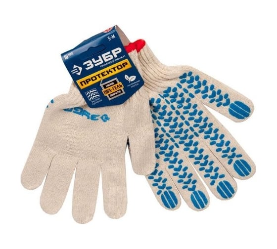 Технические характеристики трикотажных перчаток ZeepDeep 10 класс, х/б, с защитой от скольжения, s-m зубр 11452-s 699517