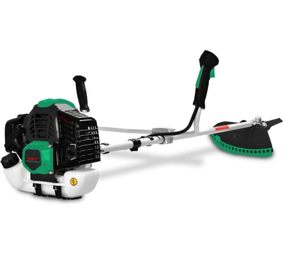 Бензиновый триммер DWT BFSP2102- аналог модели BFSP2101, но с разборной штангой. Устройство предназначено для кошения травы и прочей относительно мягкой растительности с помощью катушки с леской. Кроме того, поменяв катушку на входящий в комплект поставки косильный нож с 40 зубьями (40Т), снабженными твердосплавными напайками, можно успешно справляться с молодыми побегами разросшихся кустарников и деревьев. Агрегат позволит привести в порядок сильно заросшие лужайки, участки с неровной поверхностью, узкие зоны, например, между садовыми постройками, клумбами и т.д. Двухтактный бензиновый двигатель внутреннего сгорания работает на топливной смеси бензина и специального масла для двухтактных двигателей (2Т) в соотношении 40:1. Простые, интуитивно понятные органы управления работой устройства вынесены на эргономичную рукоятку велосипедного типа для максимального удобства пользователя, а ранцевый подвес оптимально распределяет нагрузку на руки и спину человека во избежание утомления и чувства дискомфорта. Предусмотрены легкий запуск и праймер для подкачки топлива в карбюратор. Модель характеризуется экономичностью и низким уровнем шума. Прочная штанга диаметром 28 мм обеспечивает надежность и долговечность триммера, а ее разборная конструкция упрощает хранение и транспортировку устройства.
